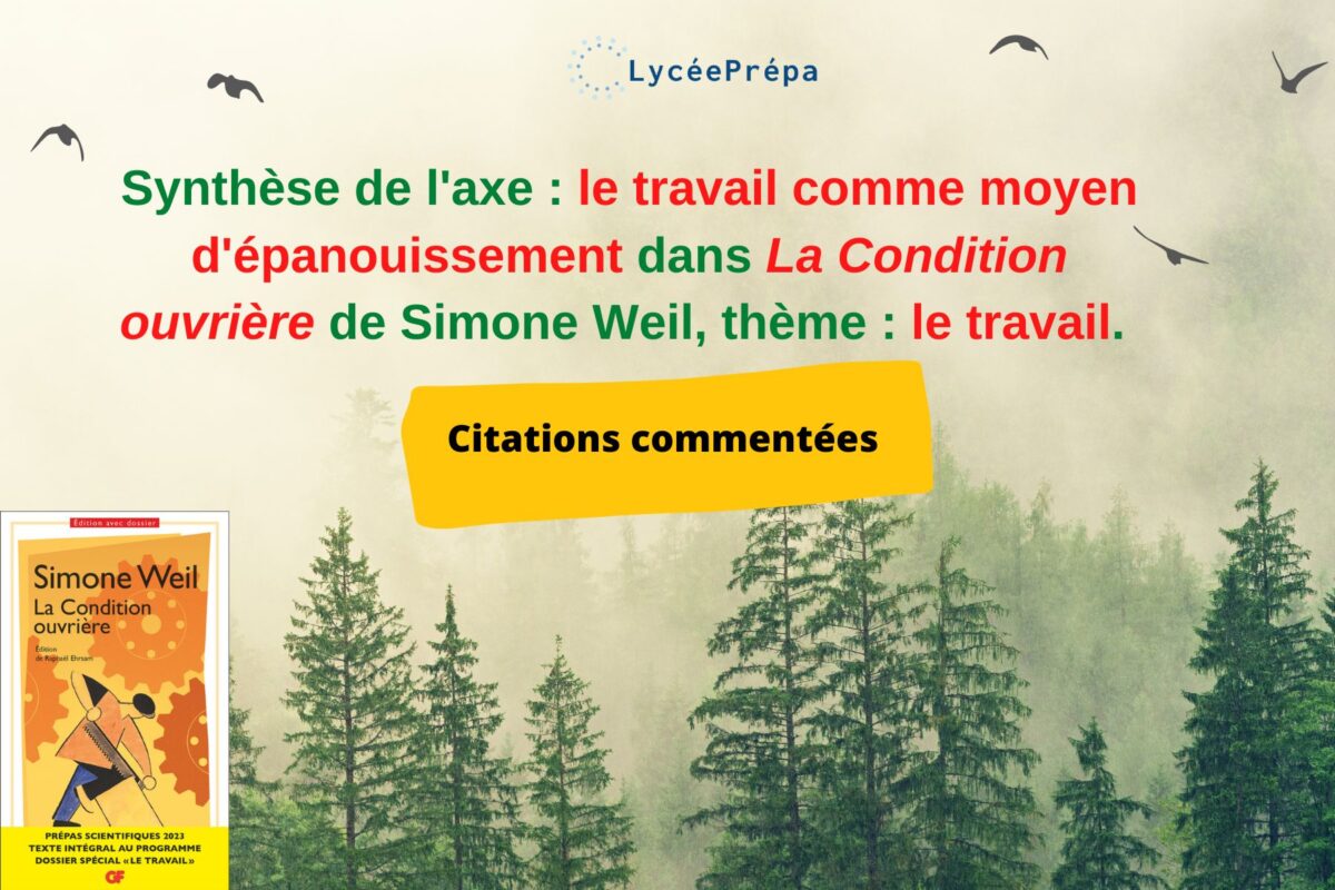 Synthèse de l’axe : le travail comme moyen d’épanouissement dans La Condition ouvrière de Simone Weil, thème : le travail.