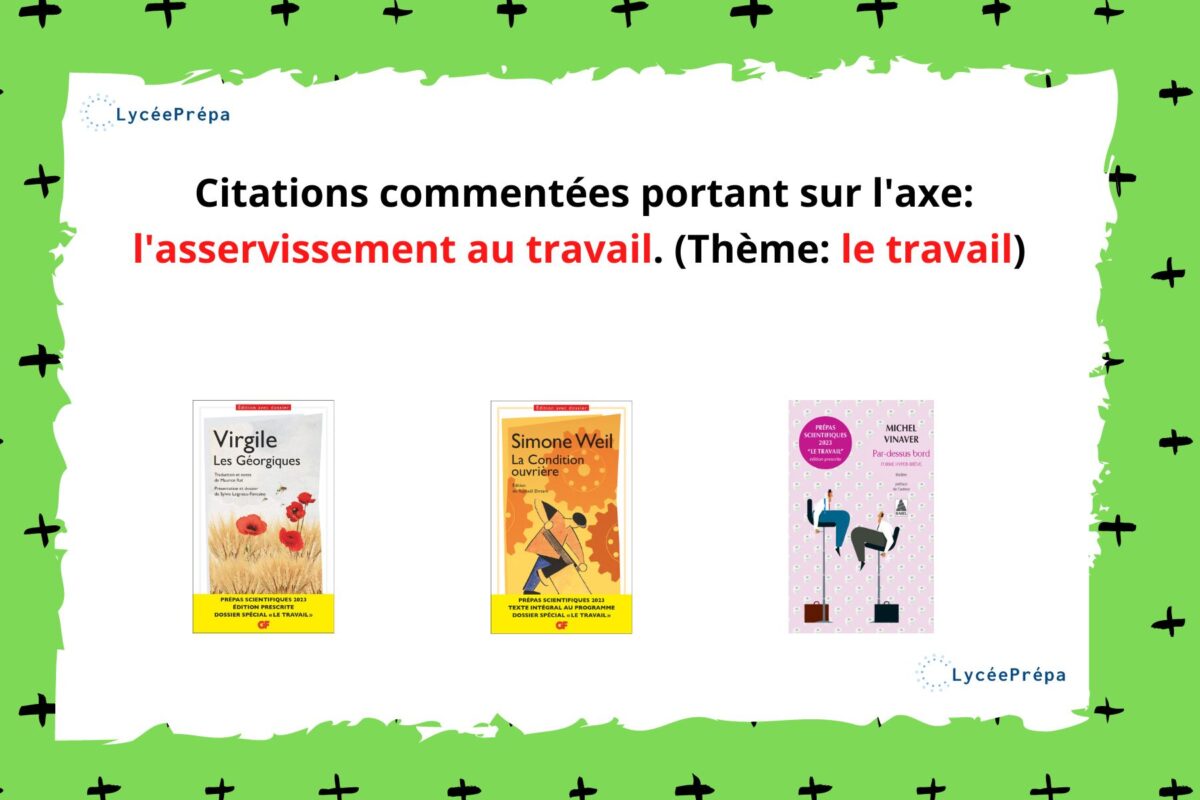 Citations commentées portant sur l’axe: l’asservissement au travail. (Thème: le travail)