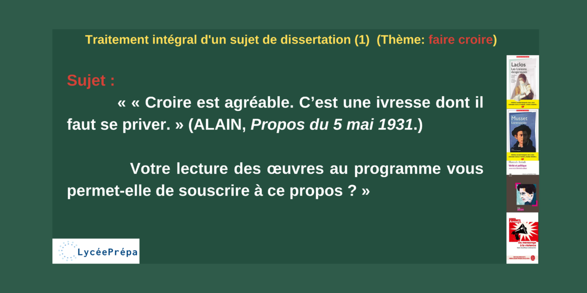 Traitement intégral d’un sujet de dissertation (1) (Thème: faire croire)