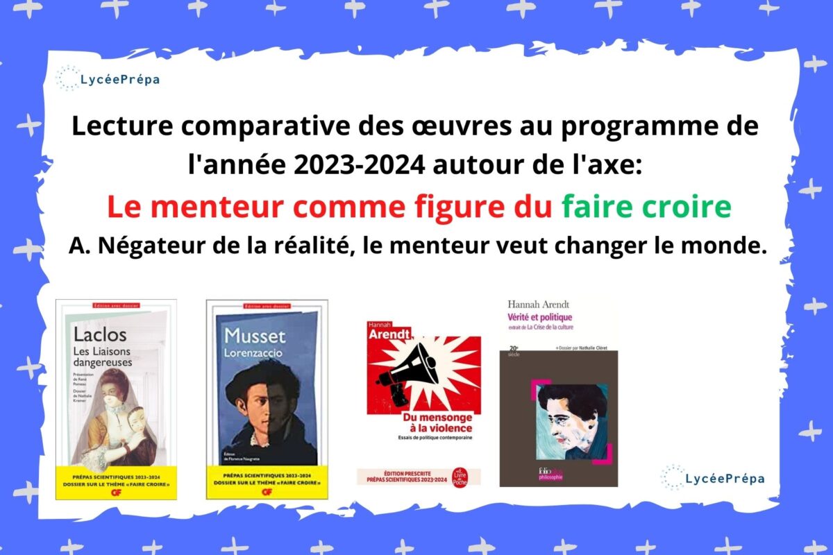 Lecture comparative des œuvres au programme de l’année 2023-2024 autour de l’axe : Le menteur comme figure du faire croire