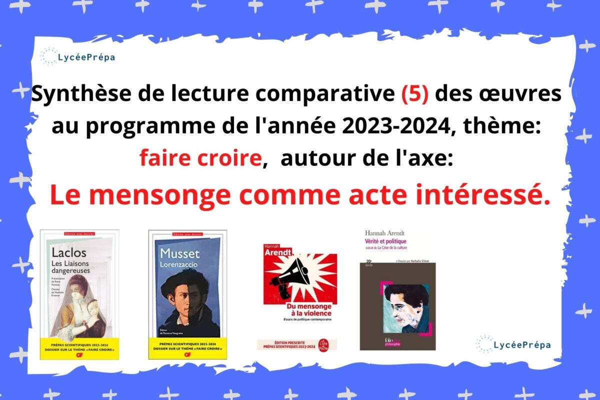 Synthèse de lecture comparative (5) des œuvres au programme de l’année 2023-2024, thème: faire croire, autour de l’axe : Le menteur comme figure du faire croire.