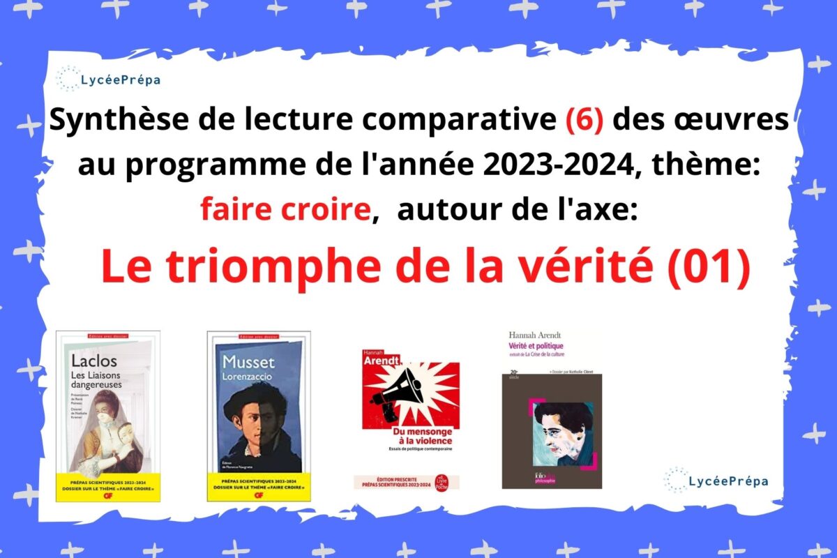 Synthèse de lecture comparative (6) des œuvres au programme de l’année 2023-2024, thème: faire croire, autour de l’axe : Le triomphe de la vérité (01)