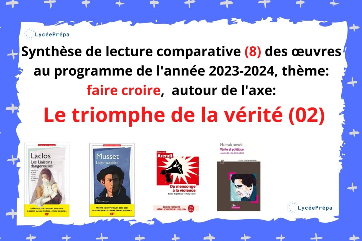 Synthèse de lecture comparative (8) des œuvres au programme de l’année 2023-2024, thème: faire croire, autour de l’axe : Le triomphe de la vérité (02)