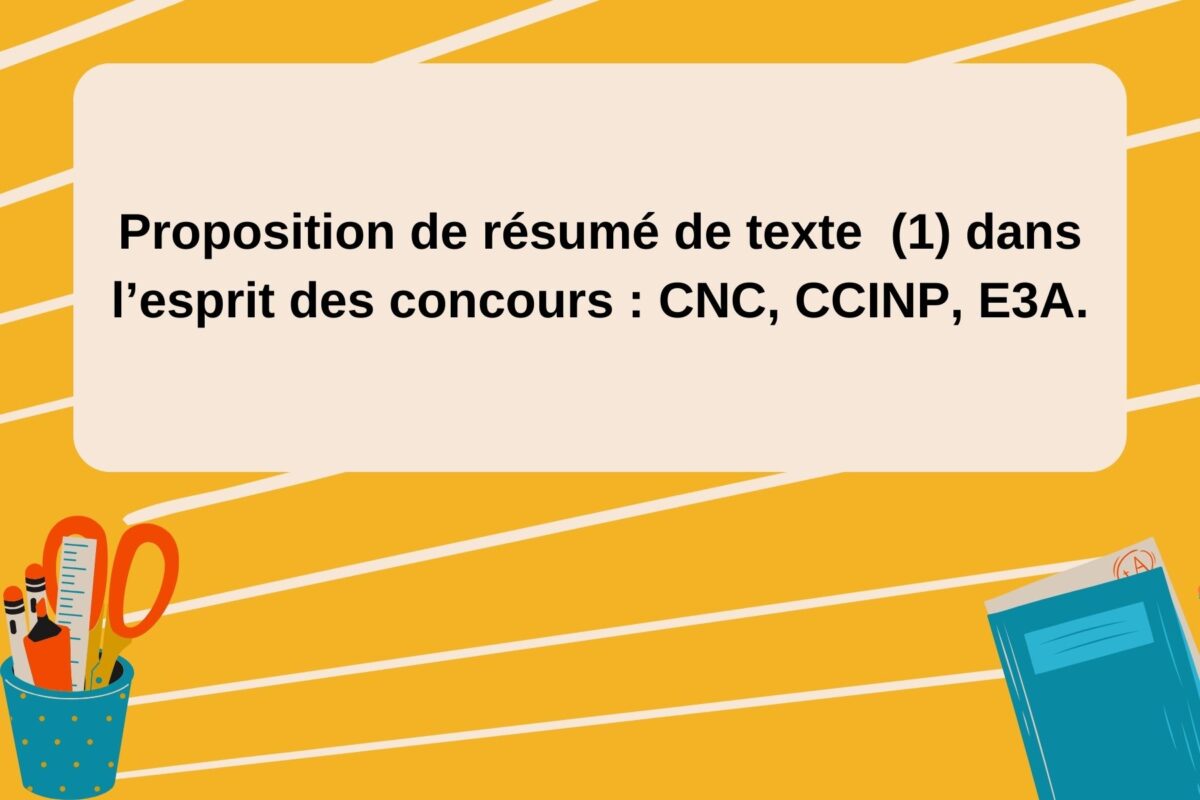 Proposition de résumé de texte (1) dans l’esprit des concours : CNC, CCINP, E3A.