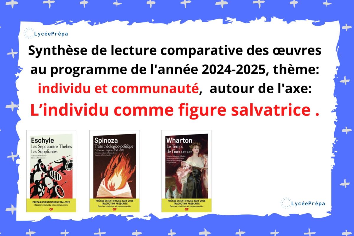 Synthèse de lecture comparative des œuvres au programme de l’année 2024-2025, thème: « individu et communauté », autour de l’axe: L’individu comme figure salvatrice .