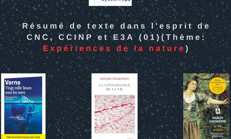 Résumé de texte dans l’esprit de CNC, CCINP et E3A (01)(Thème: Expériences de la nature)