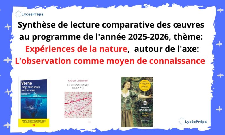 Synthèse de lecture comparative des œuvres au programme de l’année 2025-2026, thème: Expériences de la nature, autour de l’axe: L’observation comme moyen de connaissance