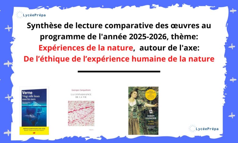 Synthèse de lecture comparative des œuvres au programme de l’année 2025-2026, thème: Expériences de la nature autour de l’axe: De l’éthique de l’expérience humaine de la nature