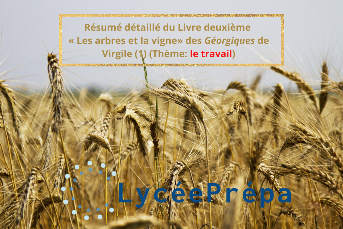 | « Les arbres et la vigne » | 73- 89 | –Des variétés des arbres –Invitation au travail et adresse à Mécène (sollicitation de l’aide de Mécène). –Les soins minutieux que l’agriculteur doit prodiguer au arbres afin d’améliorer la récolte: Transplantation et greffe. –Des différentes natures des terres et leur nécessaire compatibilité avec les espèces d’arbres. –Des propriétés des terrains. –Travail préalable à la plantation d’arbres. |