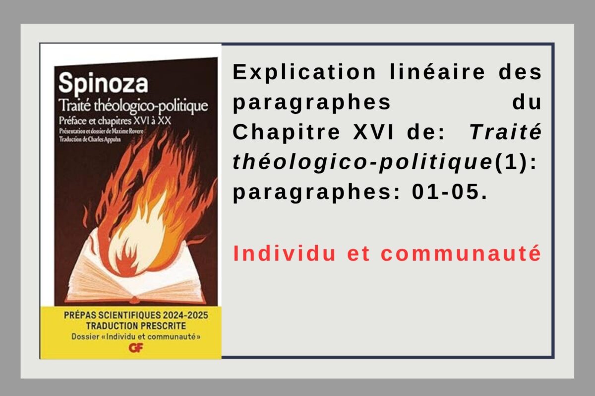 | [5] Lignes : 16-28 | Spinoza souligne, dans cet élément du cinquième paragraphe, la nécessité, pour l’individu, d’une part, d’intégrer une communauté, ou pour l’ensemble des individus de former une communauté solidaire et d’autre part de vivre selon les prescriptions de la raison afin de se libérer de l’emprise des besoins et impératifs de la vie. La condition d’une vie heureuse et sécurisée est de fonder une communauté organique. Cela passe par le renoncement de chaque individu à son droit naturel en faveur de la communauté. Ainsi, la puissance et l’appétit ne définiront plus ledit droit naturel qui sera alors aligné sur la volonté de l’ensemble des membres de ladite communauté. | « Que l’on considère encore que, s’ils ne s’entraident pas, les hommes vivent très misérablement. (P. 70) (Nécessité, pour l’individu, de vivre en communauté) « Pour vivre dans la sécurité et le mieux possible les hommes ont dû nécessairement aspirer à s’unir en un corps et ont fait par là que le droit de chacun avait de nature sur toutes choses appartînt à la collectivité et fût déterminé non plus par la force et l’appétit de l’individu mais par la puissance et la volonté de tous ensemble. » (P. 70) |