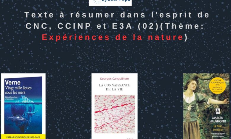 Texte à résumer dans l’esprit de CNC, CCINP et E3A (02)(Thème: Expériences de la nature)