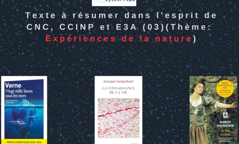 Texte à résumer dans l’esprit de CNC, CCINP et E3A (03)(Thème: Expériences de la nature)