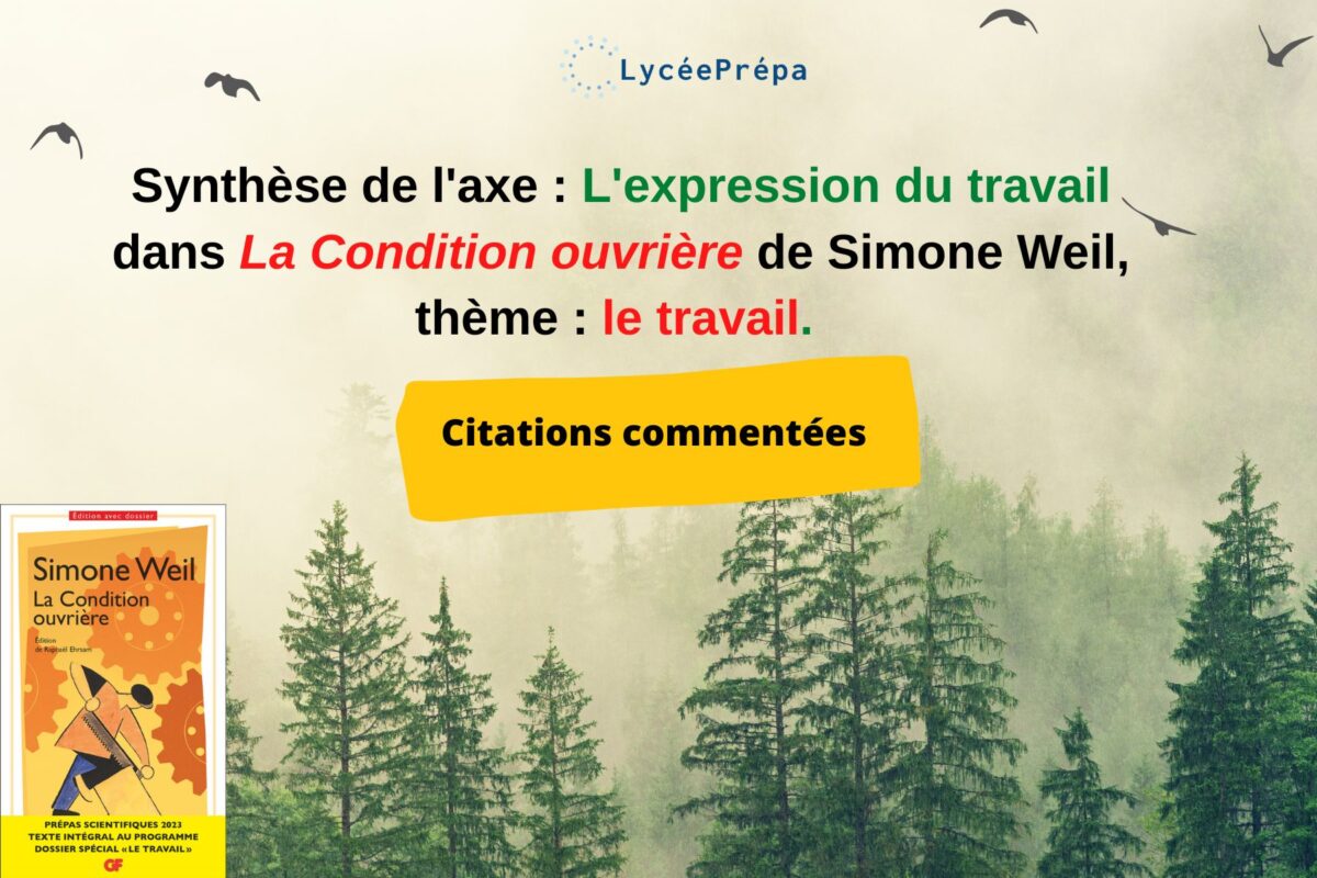 Synthèse de l’axe : L’expression du travail dans « La Condition ouvrière » de Simone Weil, thème : le travail.